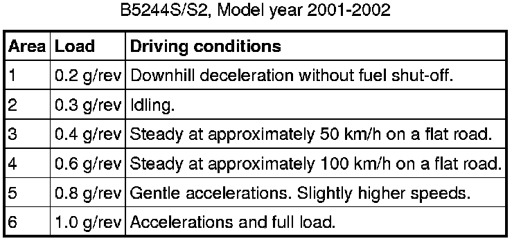 Note! Note that the air conditioning (A/C) compressor increases the load by approximately 0.05 g per rpm. The use of the AC compressor often results in a change of adaptation area.