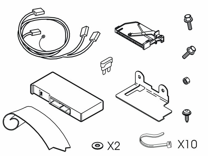 - Take the accessory electronic module from the kit. Connect the cable and connector previously routed along the right-hand side member.