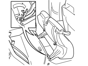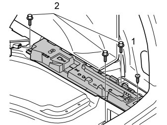 - Remove the connector (1) from the terminal (2) above the cable duct under the rear seat cushion