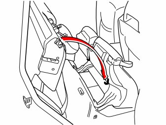 - Route the new cable harness along the side of the cargo compartment and out into the passenger compartment as illustrated