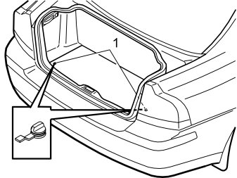 - Pull the tailgate sill trim panel (2) forwards on the right and left-hand sides until the clips on each side release. Pull hard but carefully. The panel is securely positioned