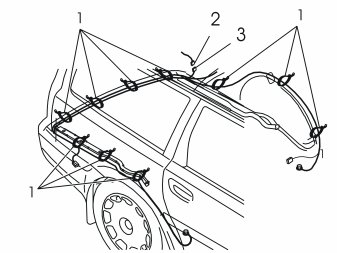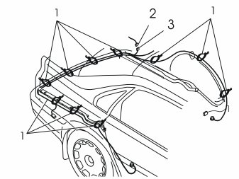 - Route the cable harness along the sides of the cargo compartment and out into the passenger compartment as illustrated