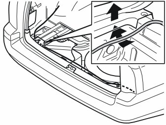 - Pull up the tailgate sill trim panel on the left-hand side. Insert the cable harness between the floor support and the sill trim panel (Illustration B)