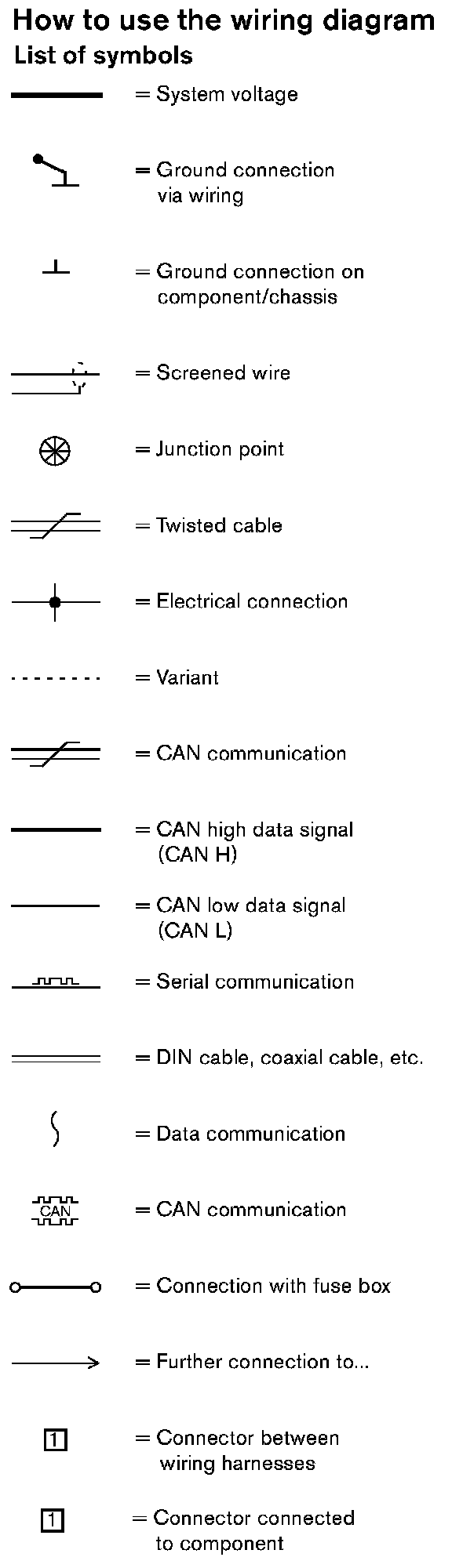 Today's cars are equipped with a CAN network, which transmits information. Connections to this network are shown in their entirety on the respective wiring diagrams. Complete information on CAN communication is can be found in the section titled "Data communication". Electrical Diagrams