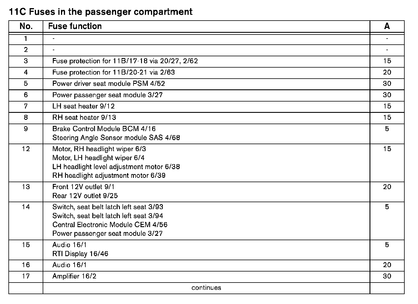 Fuses 11C/1-17: