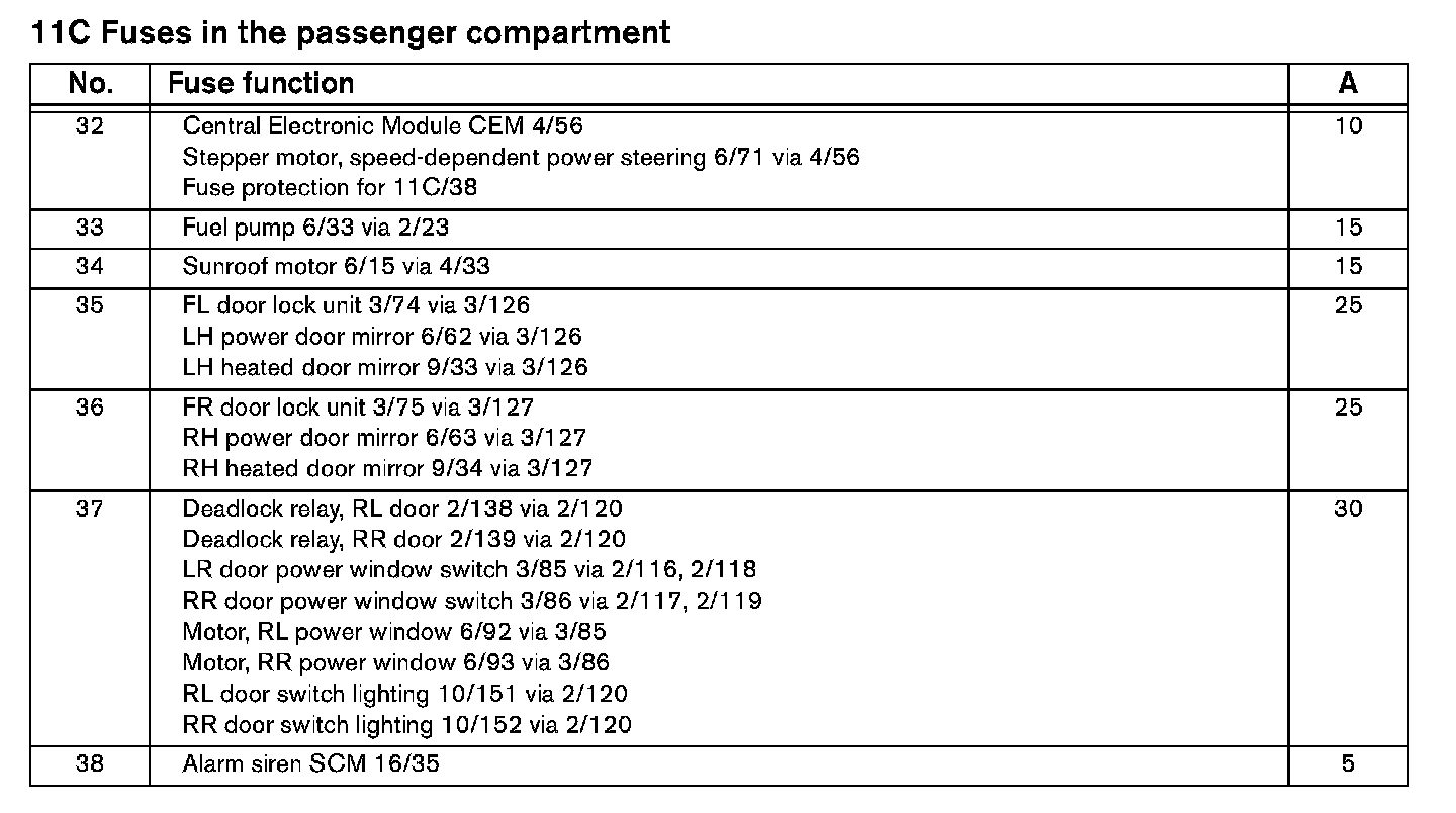 Fuses 11C/32-38: