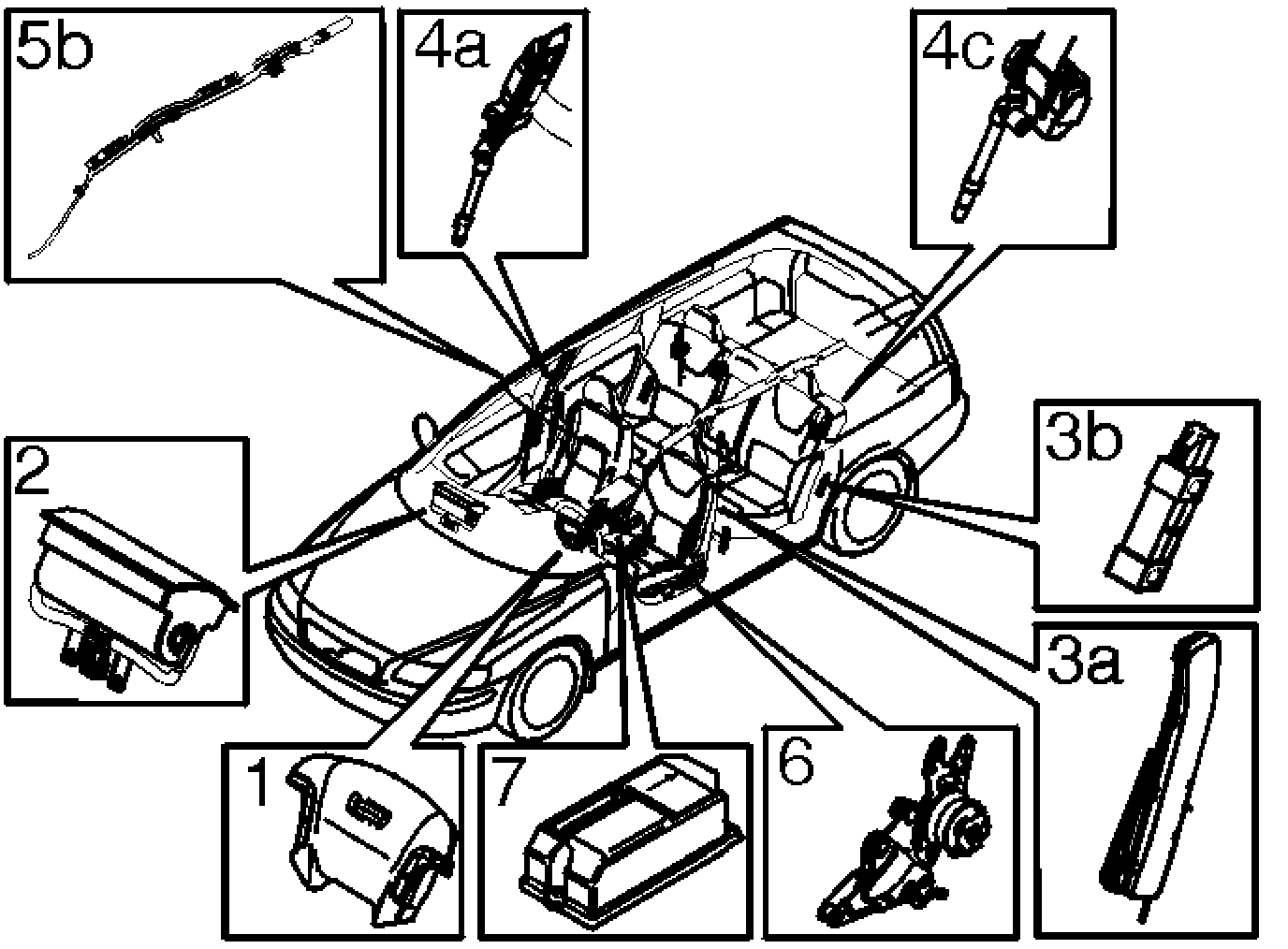 WARNING: The car has pyrotechnical airbags and seat belt tensioners. The components in the SRS system must be treated very carefully during repair.