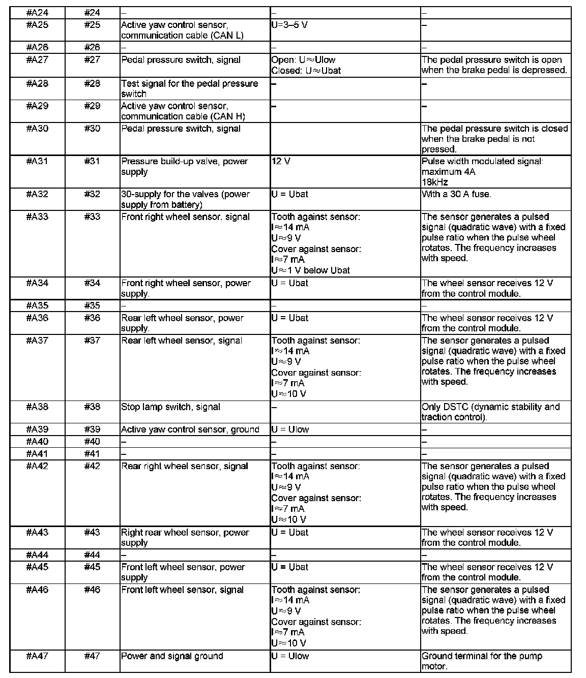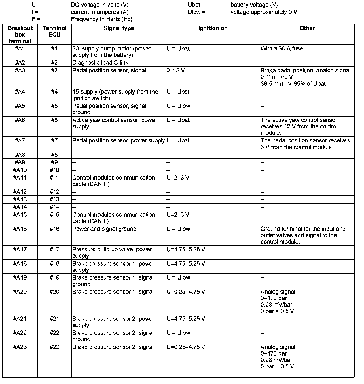 Signal specification, Brake Control Module (BCM) with DSTC (dynamic stability and traction control)