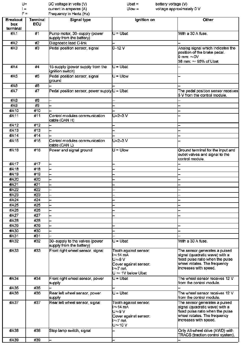 Signal specification, Brake Control Module (BCM) with STC (stability and traction control) / TRACS (traction control system)
