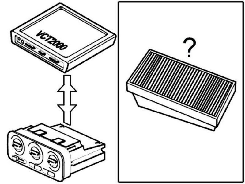 Note! If the car has a passenger compartment ventilation filter the control module must be programmed with this information. This causes the control module to increase blower fan speeds and the air flow to compensate for the resistance from the filter unit. If the control module is not programmed for a ventilation filter when there is a filter installed, the air flow will be reduced. This may affect the efficiency of the demisting of the interior of the windows. However the noise levels from the blower fan will be slightly lower. However, if the control module is programmed for a passenger compartment ventilation filter and the filter is not installed, this will cause a higher air flow which makes demisting of the windows more efficient, but also results in a slightly higher noise level.