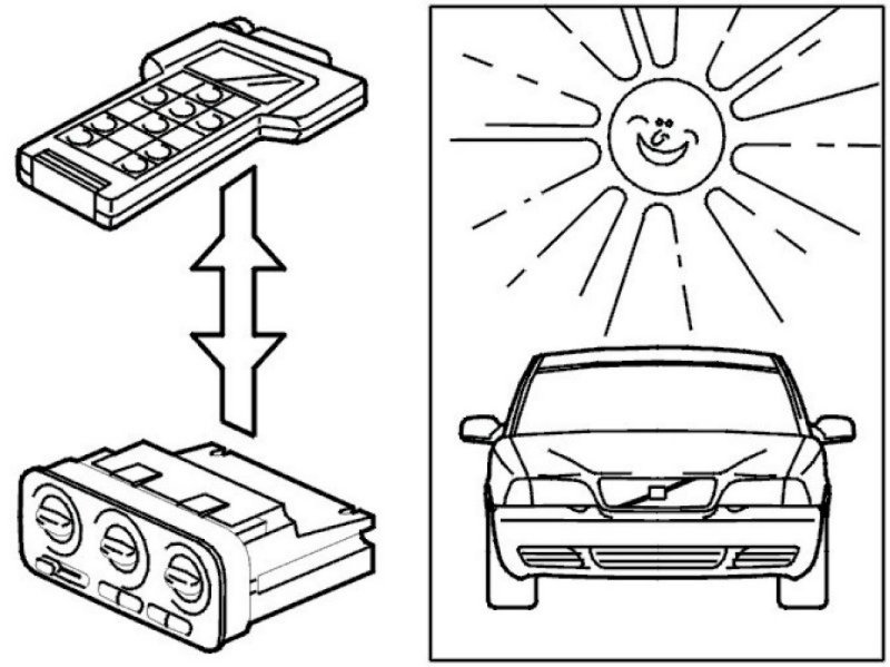 Note! The sensitivity of the sun sensor cannot be programmed on certain older control module variants. The P/N of the control module must be read off to identify the control module version.