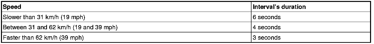 The interval's duration for the windshield wipers (and rear wiper due to the synchronization function) varies with the speed of the car.