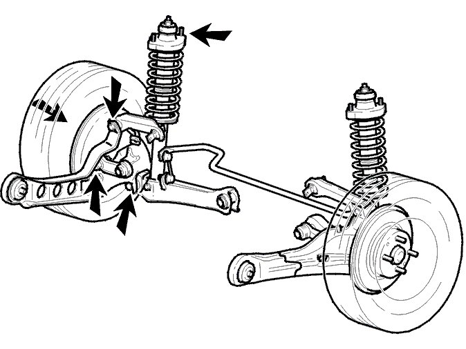 Only the toe-in and camber angle can be adjusted in the rear suspension.