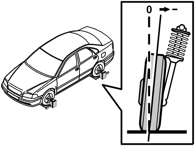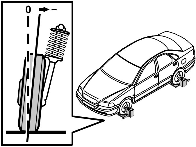 Note! The car must be in the horizontal position to obtain the correct values when checking the camber angles and the caster angles.