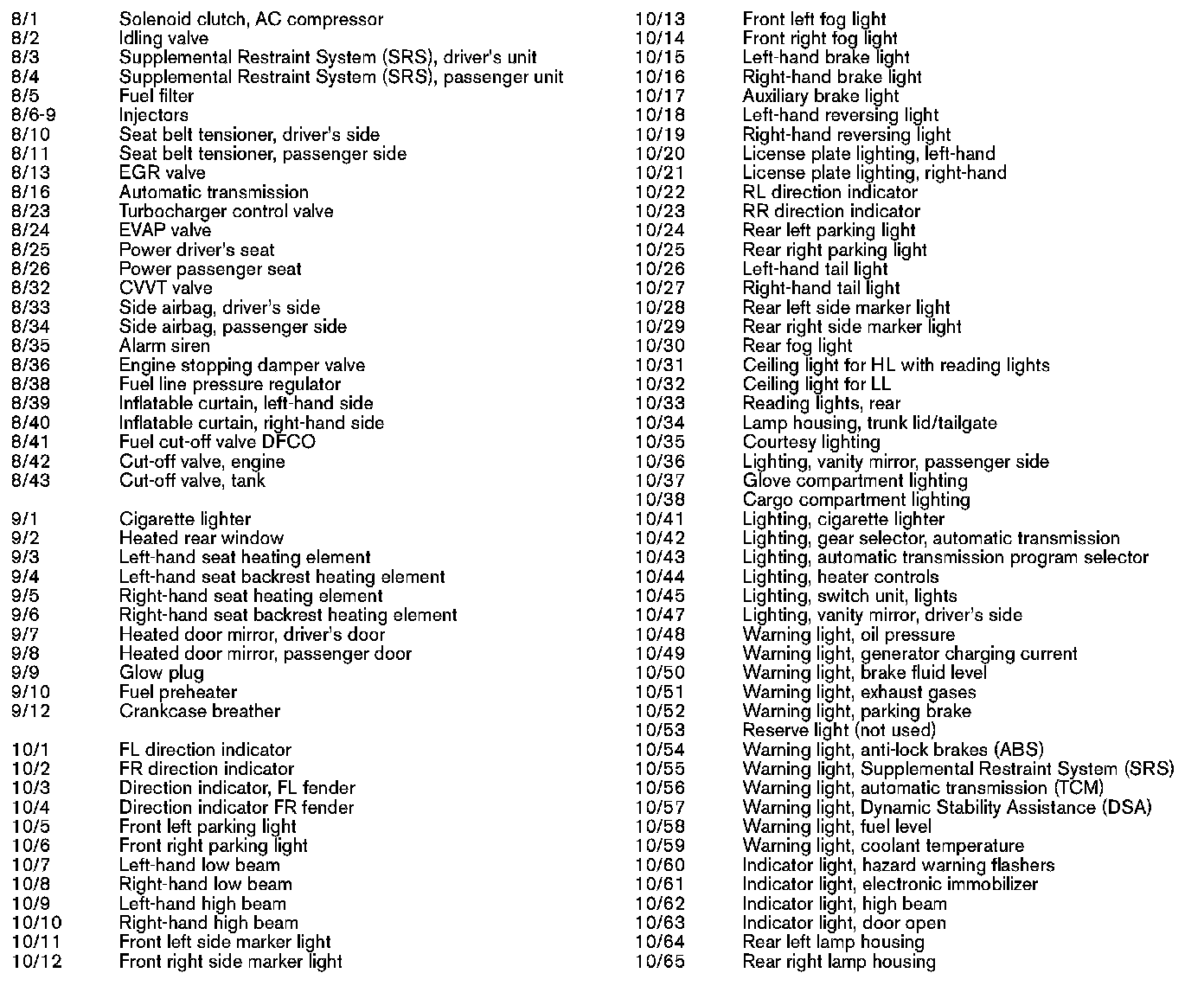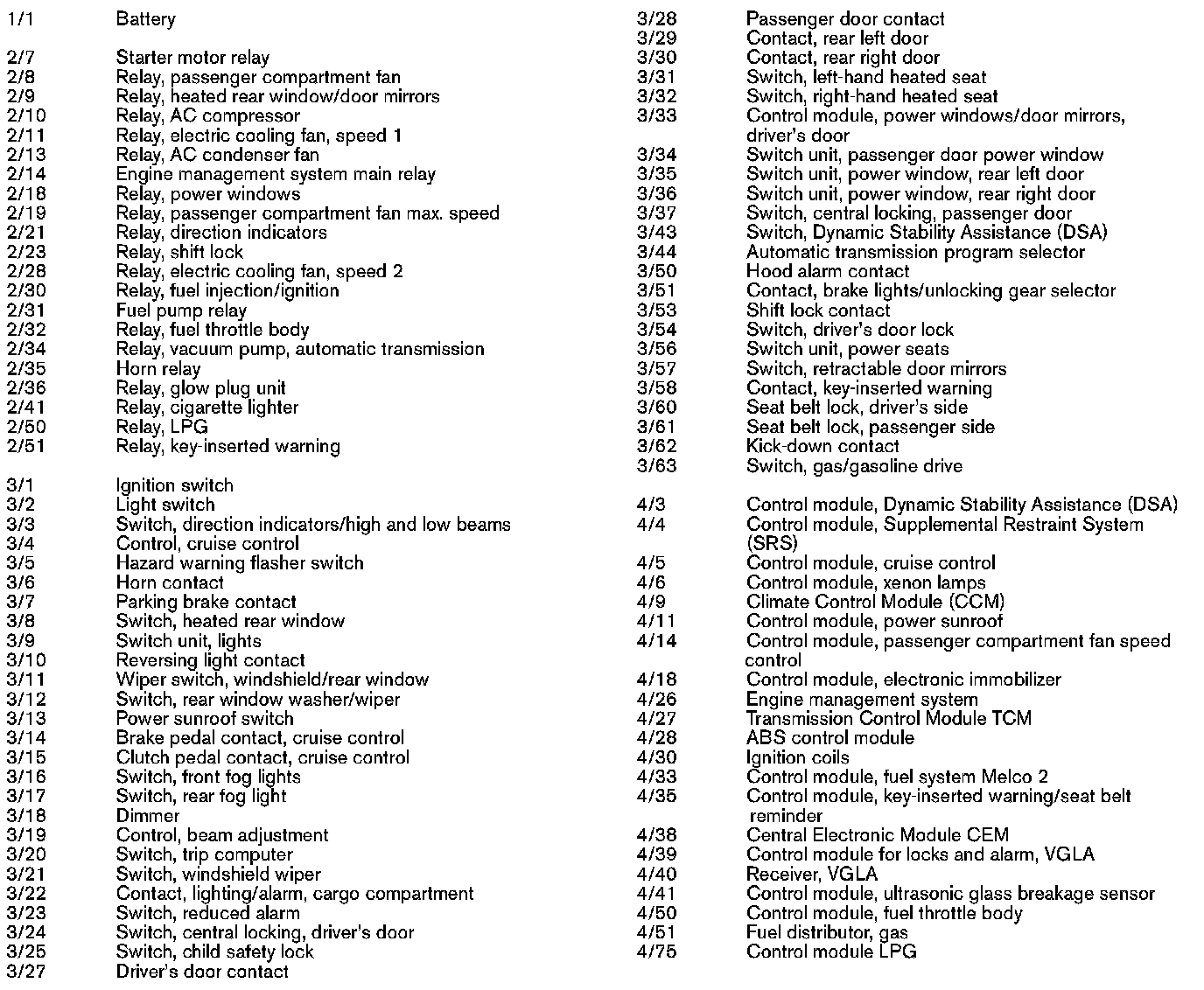 List of Components By Component Number