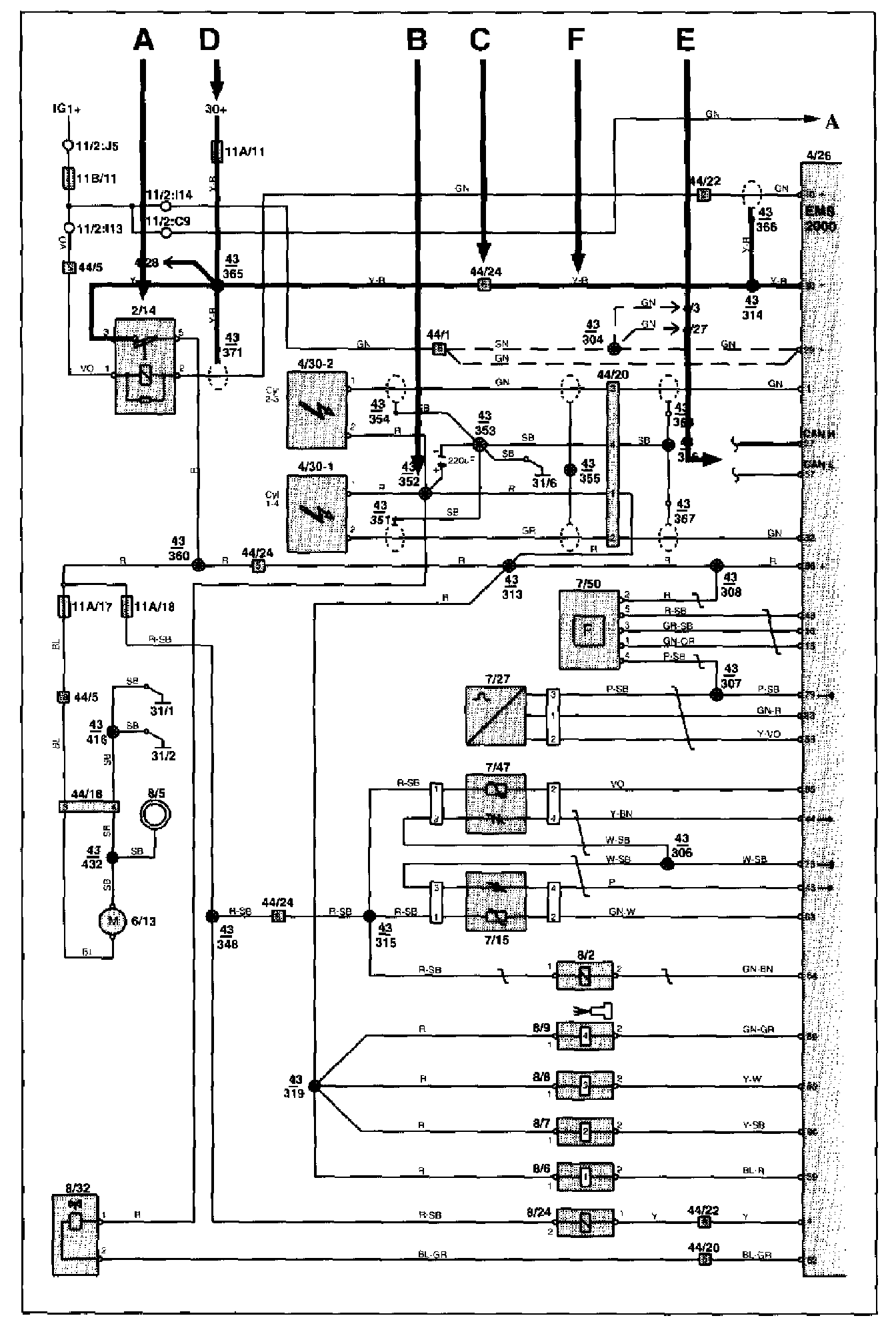 The wiring diagrams contain numbered junction points, e.g. 43/352.