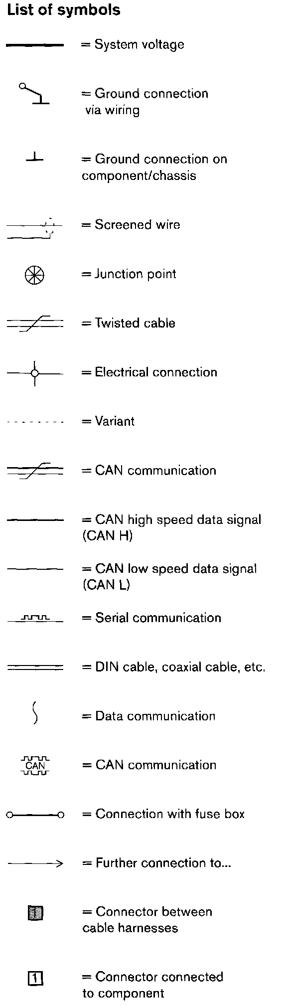 Today's cars are equipped with a CAN network, which transmits information. Connections to this network are shown in their entirety on the respective wiring diagrams. Complete information on CAN communication is can be found in "Data communication". Information Bus