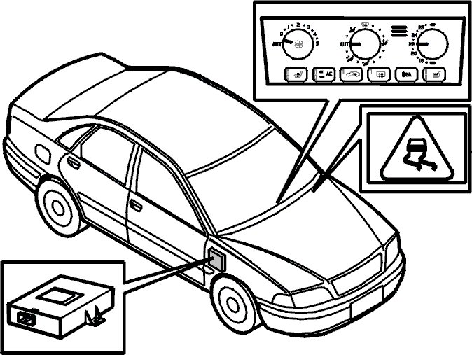 Control module (right-hand drive cars: at the left A-post), DSA warning lamp and DSA switch.