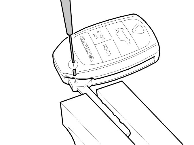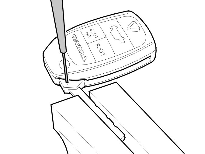 Carefully tap in the lock pin without damaging the key or the remote control, so that it passes through on both sides.