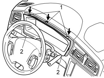 - Pry out the 2 x clips (2) in the bottom edge of the combined instrument panel. Carefully remove the combined instrument panel surround.
