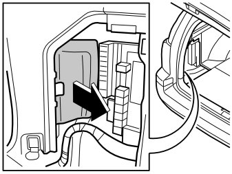 - Press in the catches on the grey connector on the reverse of the fuse holder in the cargo compartment. Turn up the lock arm as far as possible. Pull out the connector.