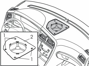 - Remove the loudspeaker grille as follows: Insert tool P/N 999-5919-46 into the joint between the loudspeaker grille and the dashboard as illustrated, until it engages.