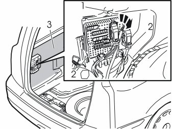 - Press in the catch on the rear brown connector in the cargo compartment fuse holder. Turn up the lock arm as far as possible and pull out the connector.
