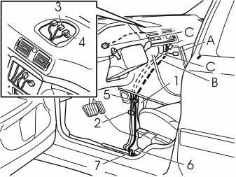 - Route the black cable (C) for the GPS antenna to the position behind the combined instrument panel.