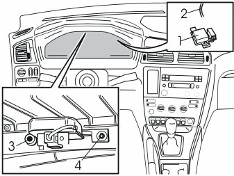 - Continue to pull up the cable ends, with the blue 5-pin connector (3) for the power supply and the grey angled connector (4) for the display screen. Route to the left of the air duct above the radio cut-out to the cut out for the centre loudspeaker.