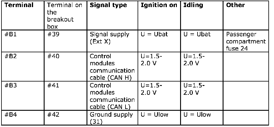 Terminals B1-B4 correspond to terminals 39-42 on the breakout box.
