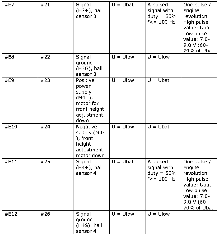 Signal Specification, Power Seat Module