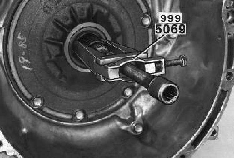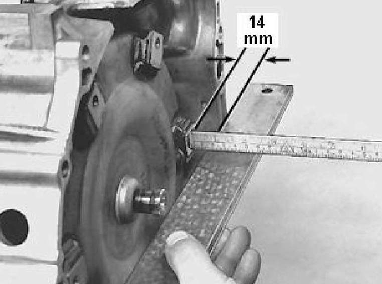 Make sure torque converter is as far into the transmission as possible. Check with a ruler. The distance between the cover and retaining tabs must be approximately 14 mm.