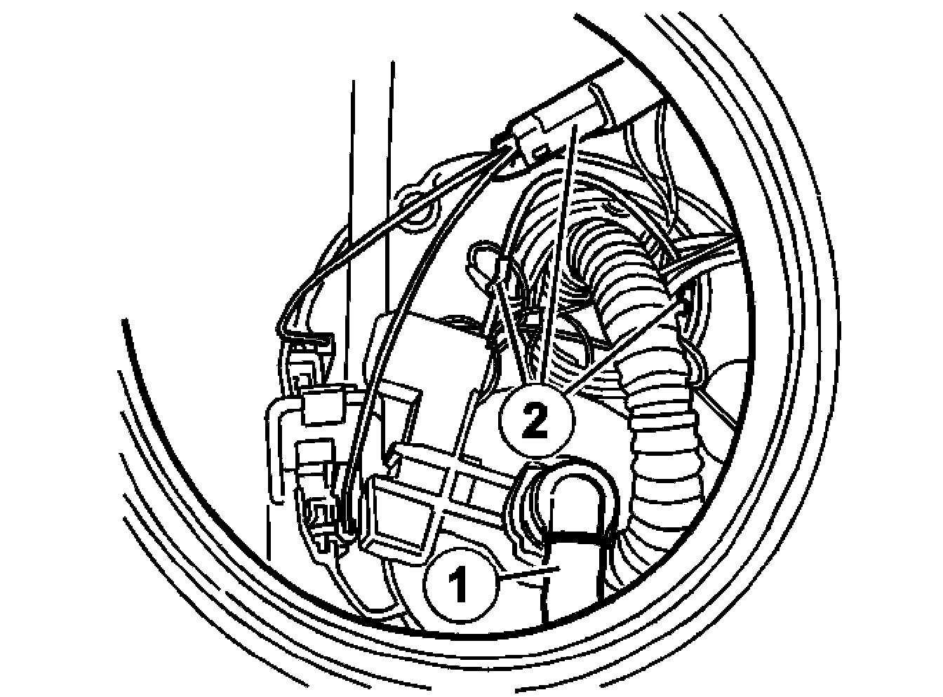 Carefully turn the pump to access the fuel hose (1).