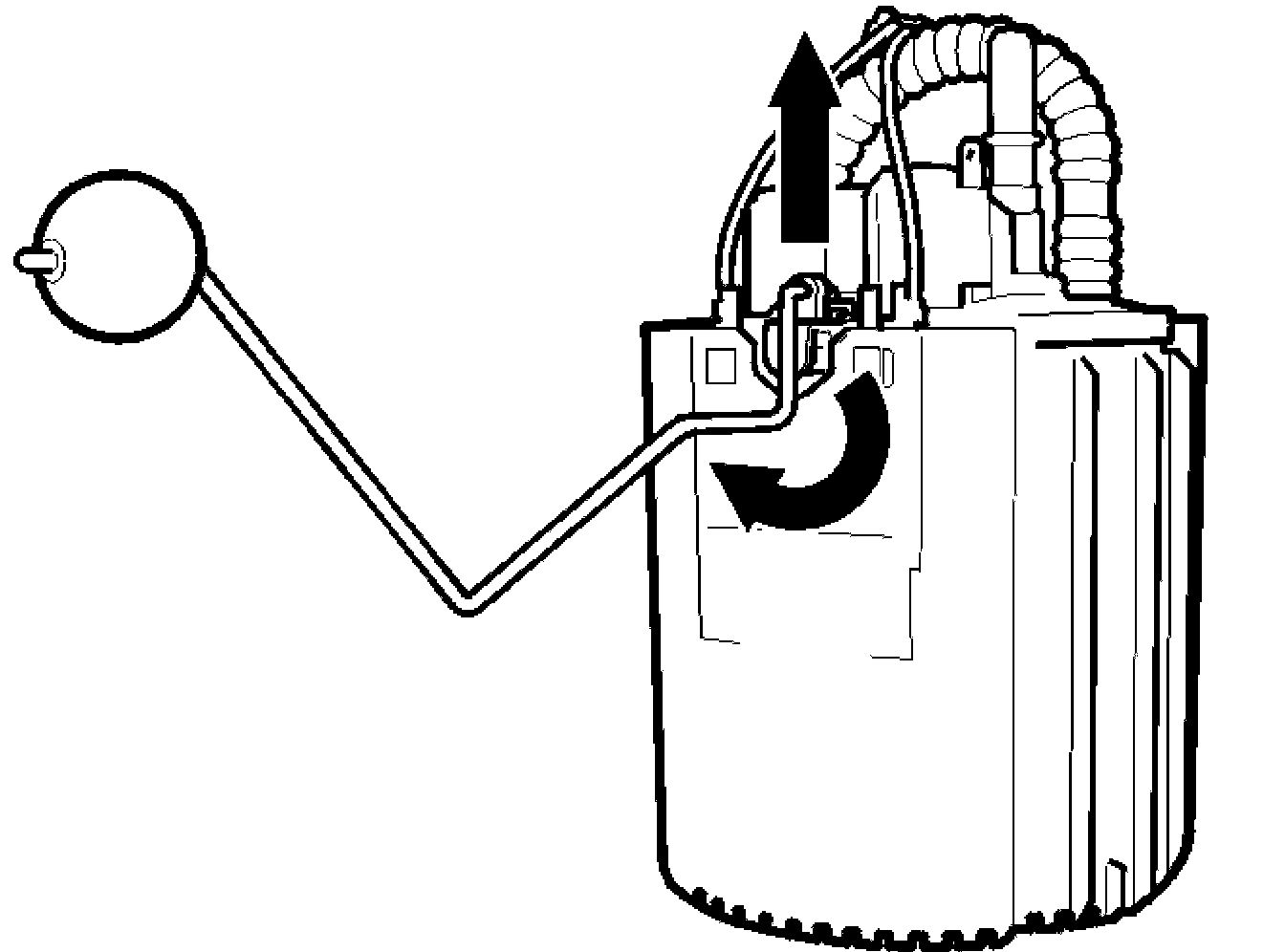 Lift up the float arm to the center position. Remove the level sensor.