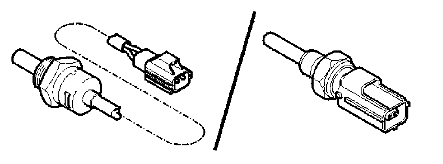 The resistance in the sensor changes depending on the temperature of the coolant. Depending on the resistance in the sensor, a voltage (signal) is transmitted to the Engine Control Module (ECM). At 0 degree C, the voltage is approximately 4.0 V. At 100 degree C the voltage is approximately 0.5 V. Low temperature results in high voltage (high resistance), high temperature in low voltage (low resistance).