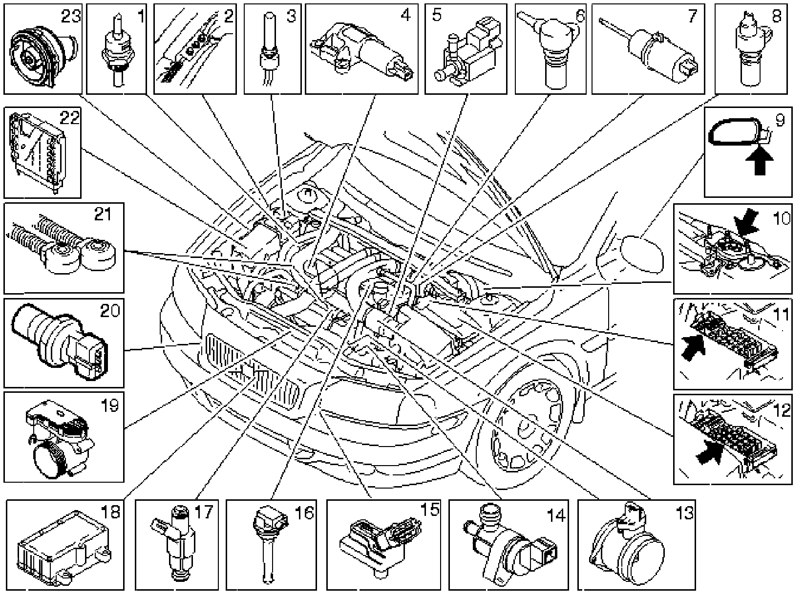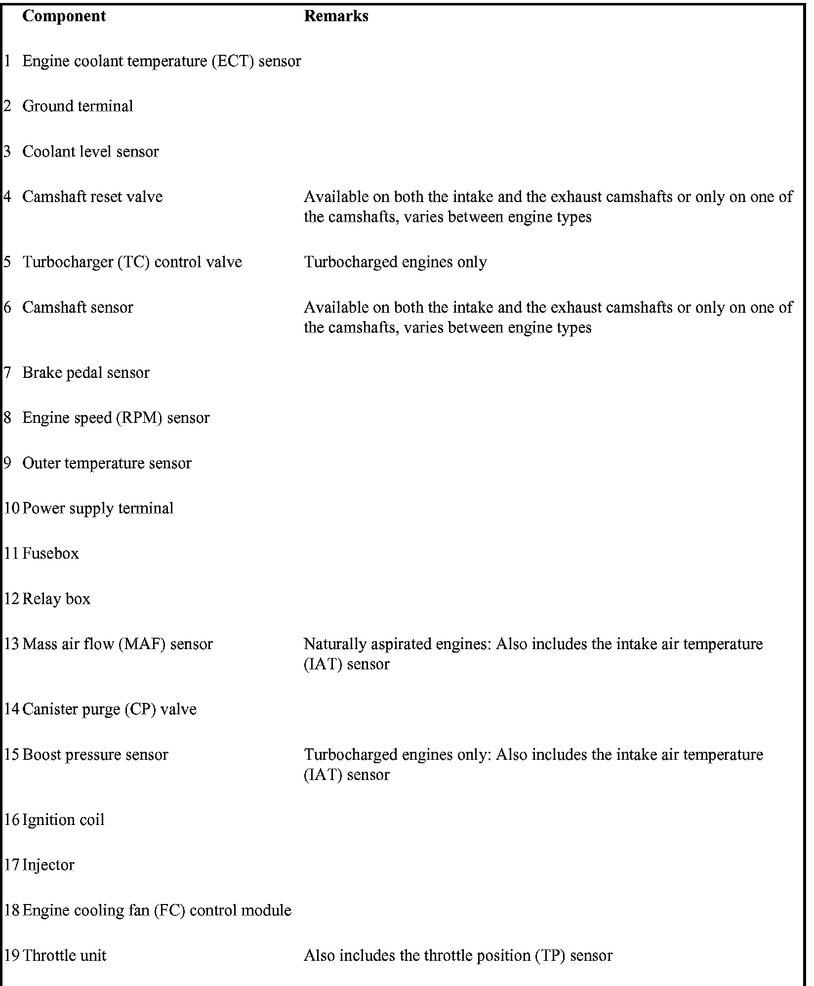 Not all the following components are necessarily in the car. The components vary between engine types.