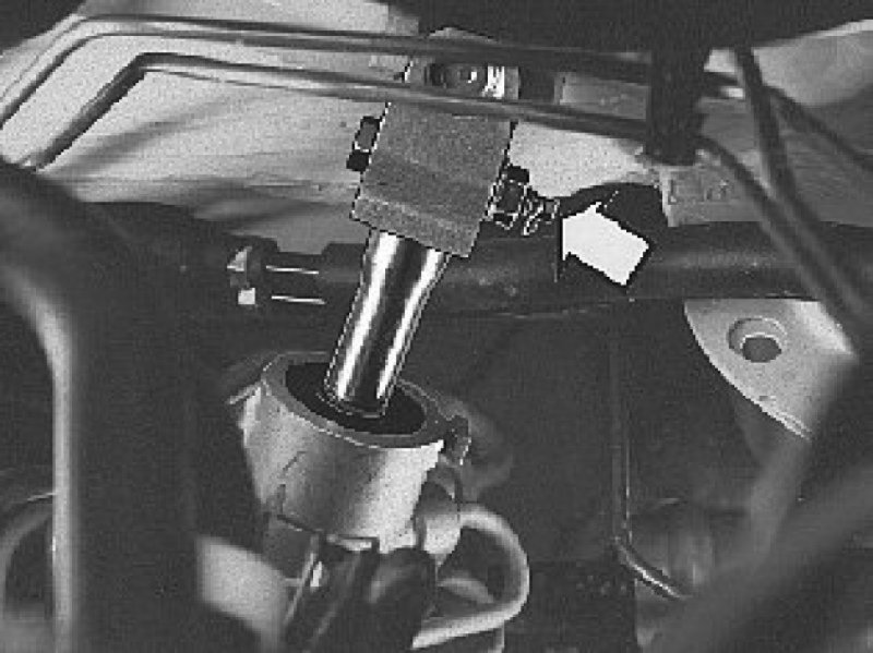 Remove the front screw from the upper torque rod.