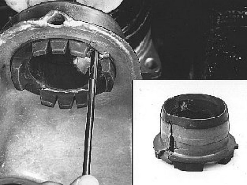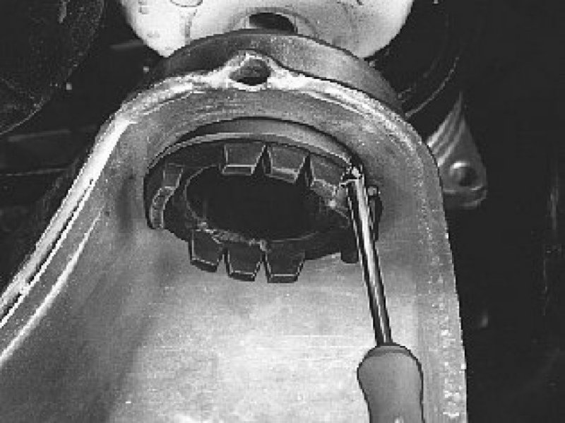 Pry out the bushing. Use the screwdriver.