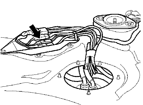- Make sure that the cables that go through the hole at the fuel pump fitting are free and can follow the tank when it is lowered later.