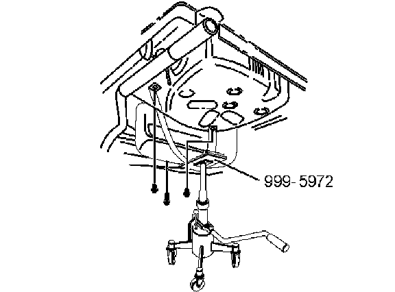 - Set lift with fixture 999 5972 under the tank. Ensure that the lift table is level so that the tank is not damaged.