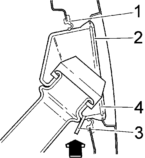 - Fold under the corner of the wheel house panel at the shock absorber mounting.