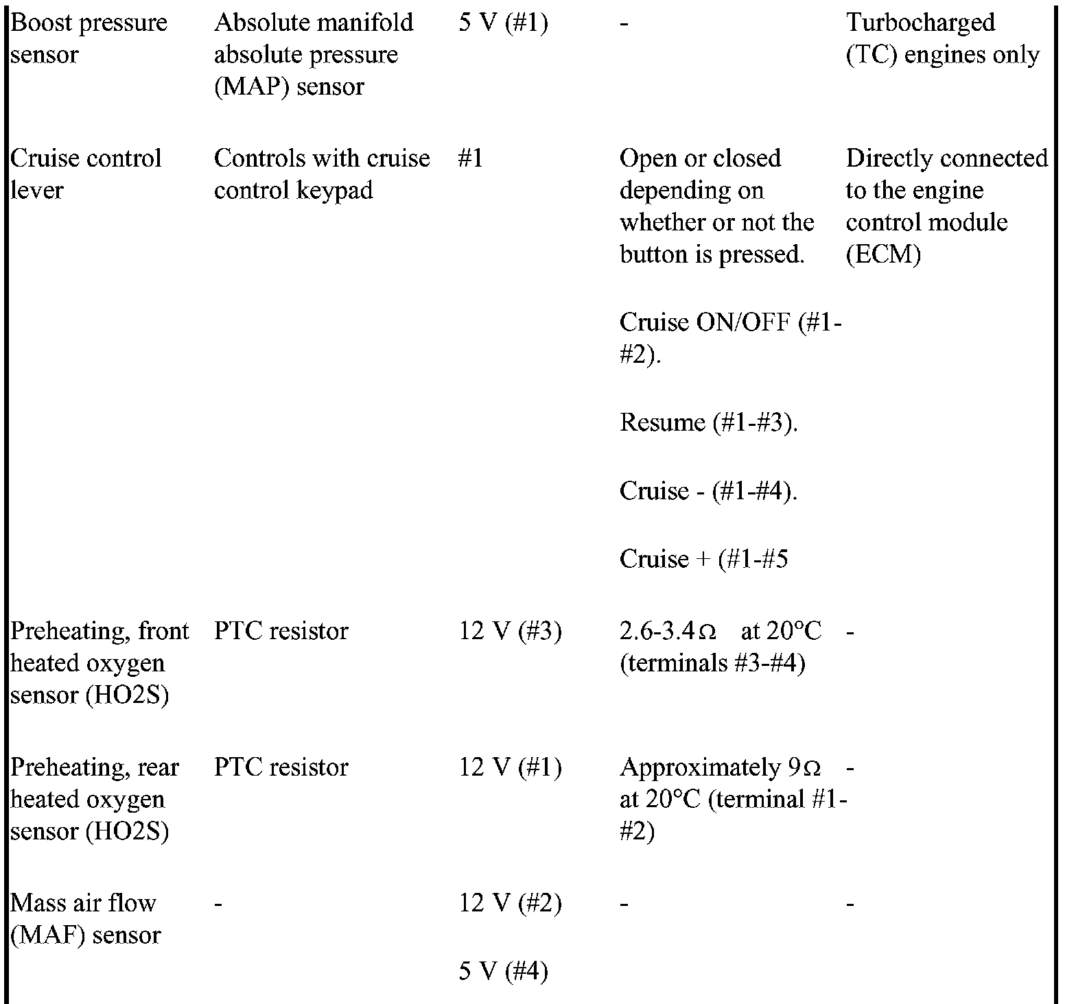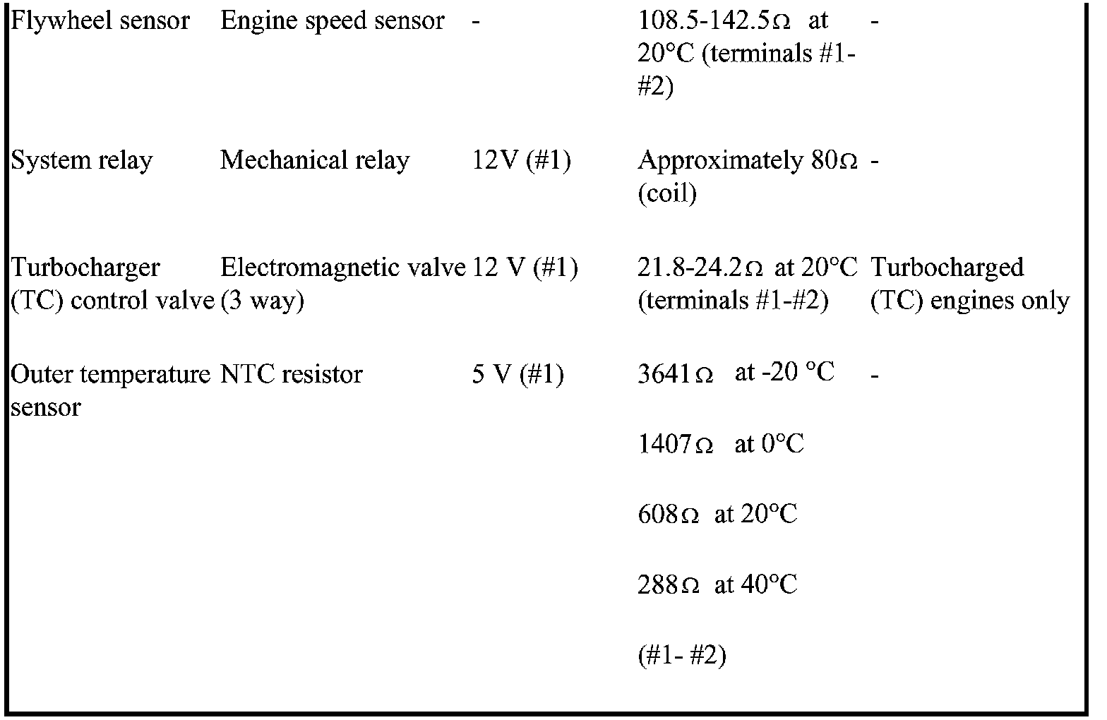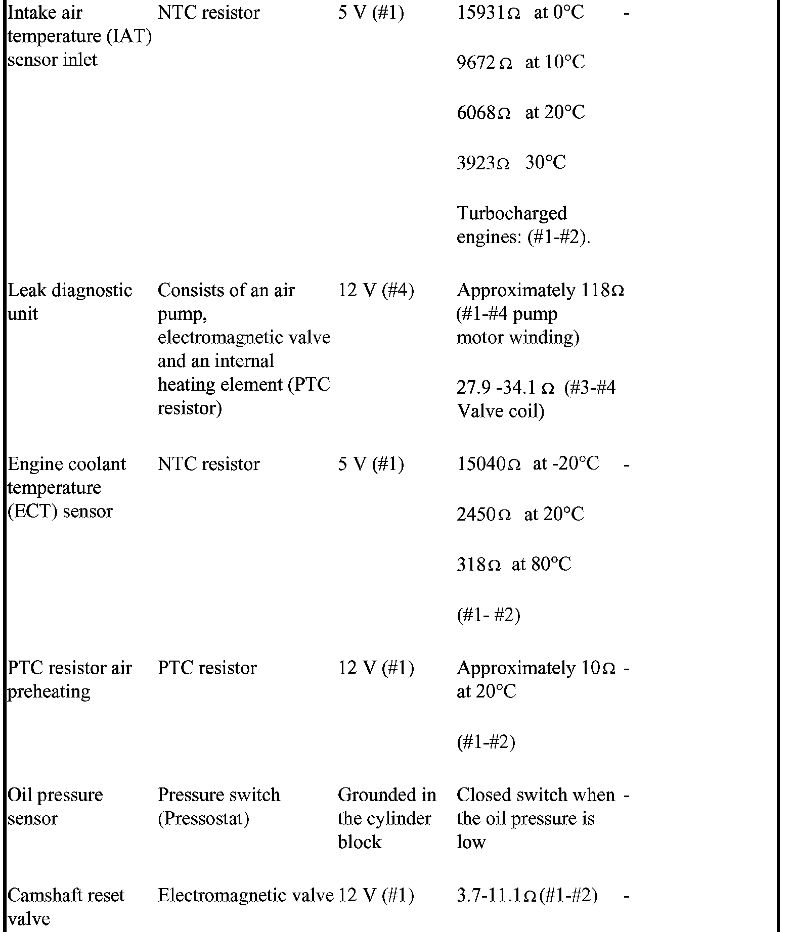 The component specification gives the value of the component when the connector is disconnected. Where no value is given, it is not possible to measure a relevant value at the component.