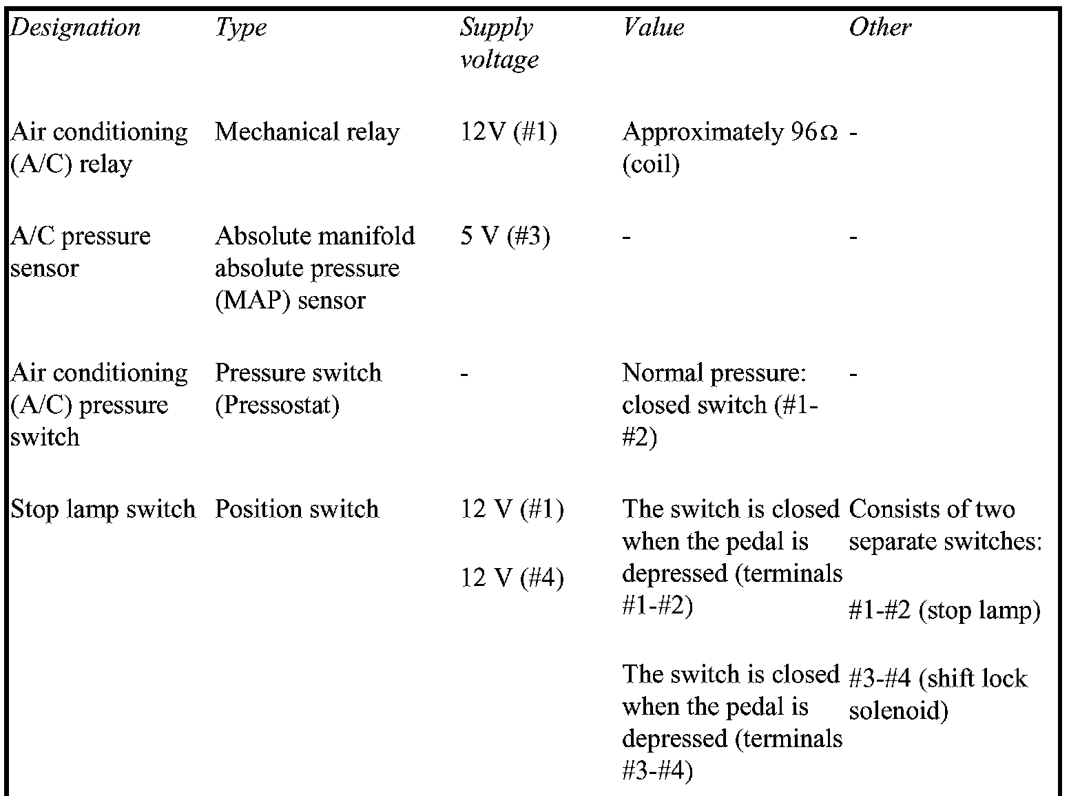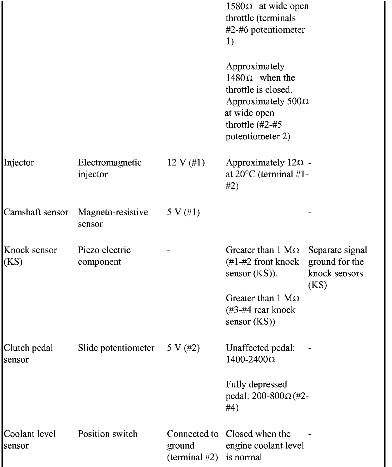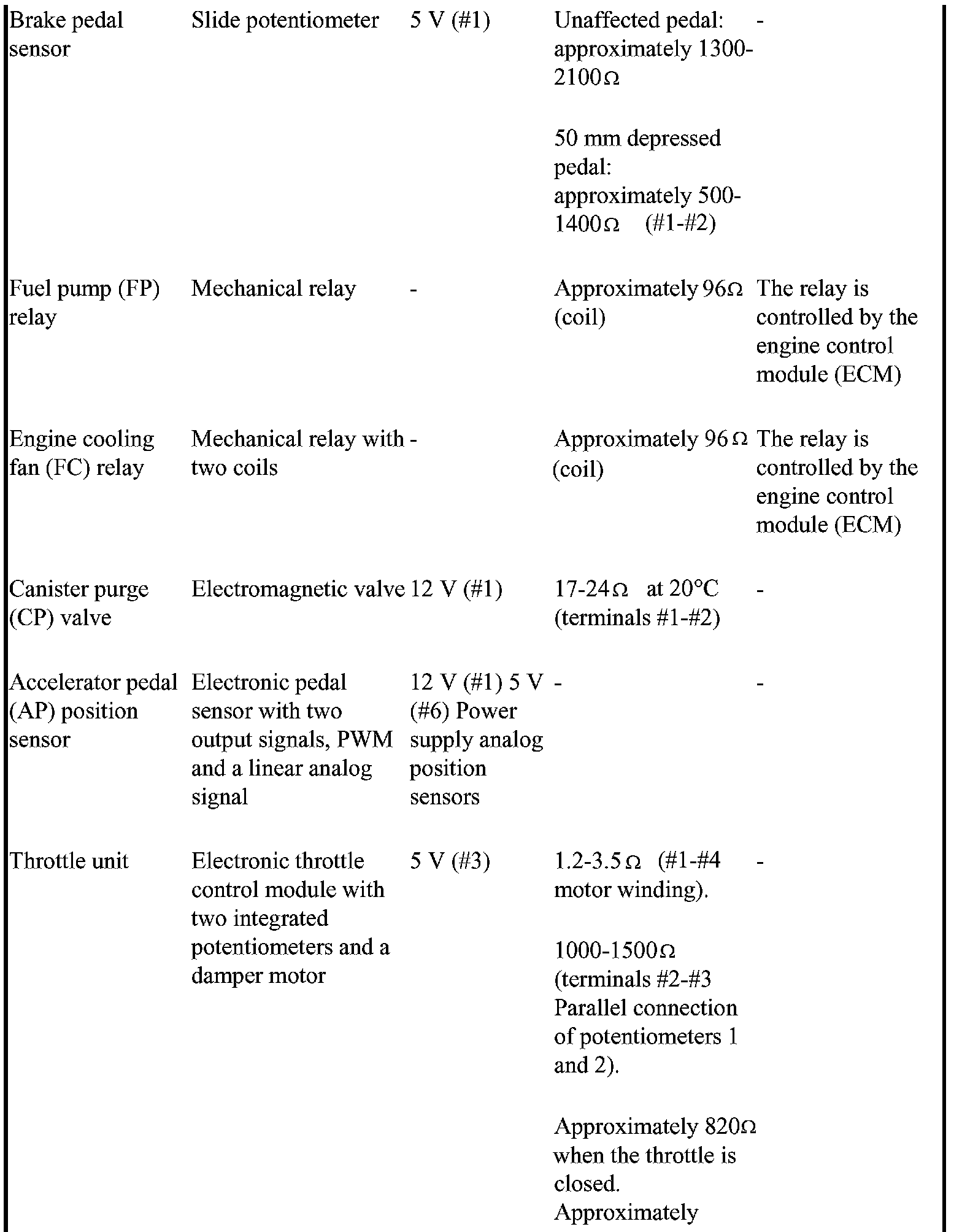 The component specification gives the value of the component when the connector is disconnected. Where no value is given, it is not possible to measure a relevant value at the component.