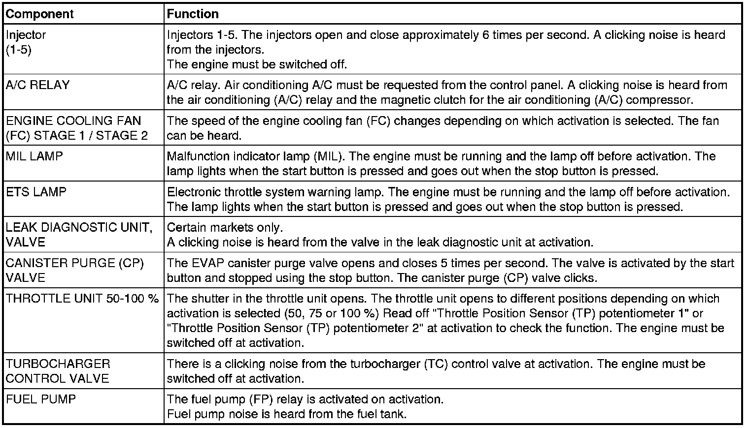 Description of Component / Functions Activation