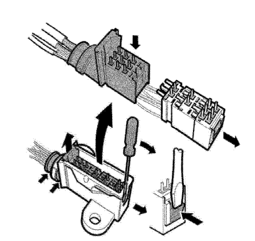 Insert a screwdriver between the casing and socket. Press in the catch. At the same time, slide the sockets out of the casing.
