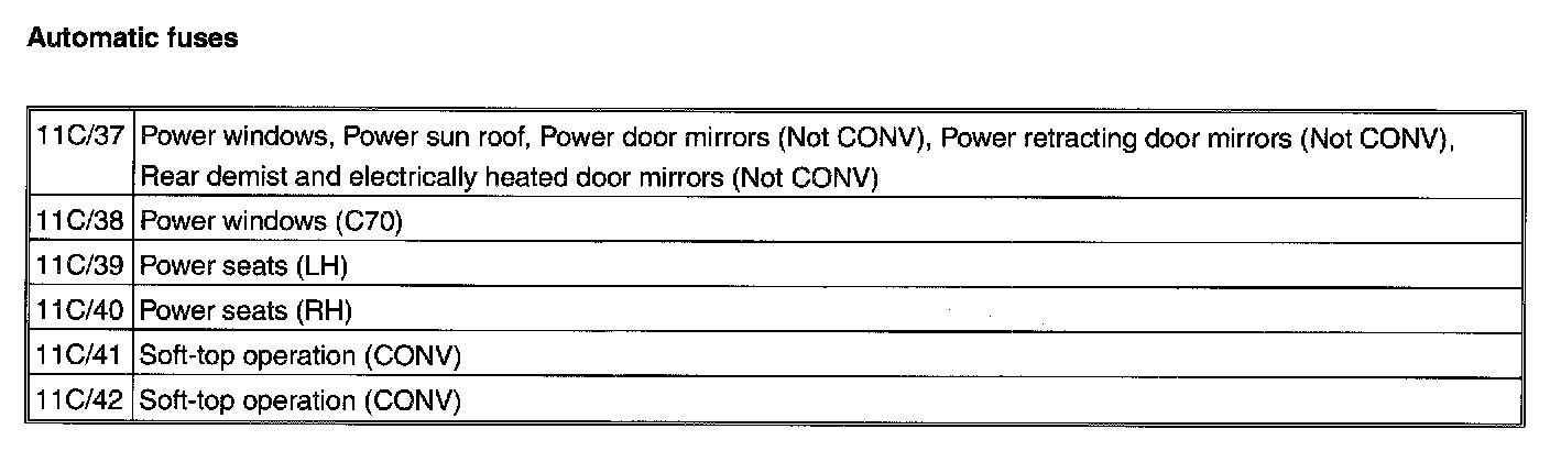 Fuses, 11C/37-42, Automatic fuses: