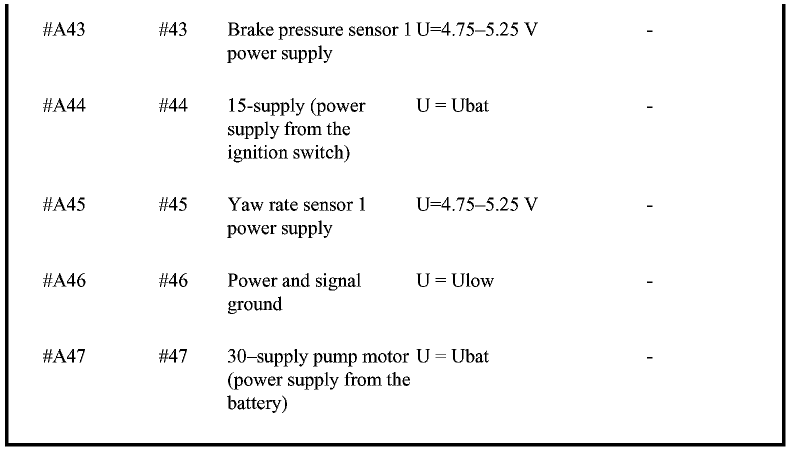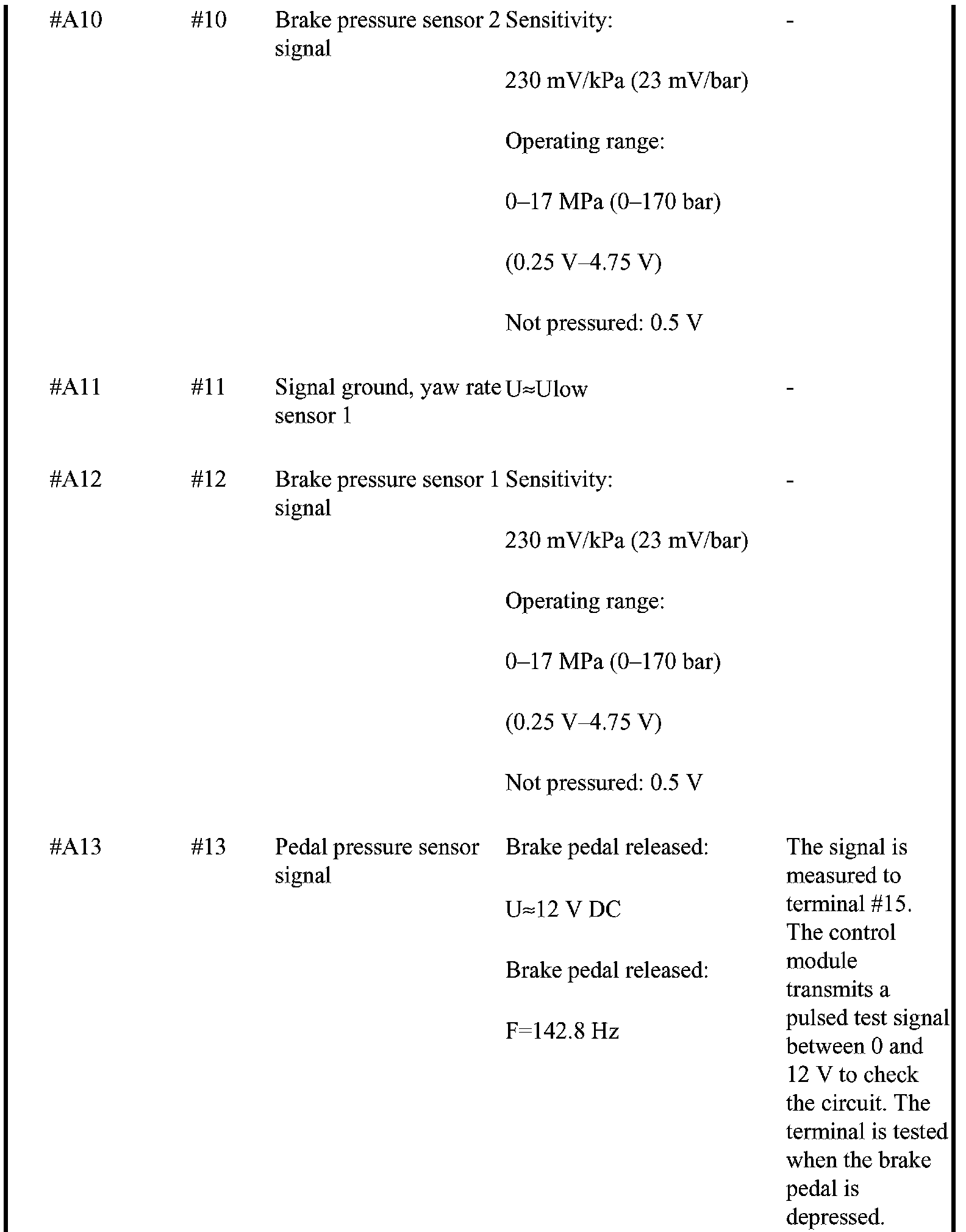 Signal Specification, ABS/DSTC (Dynamic Stability And Traction Control) Control Module