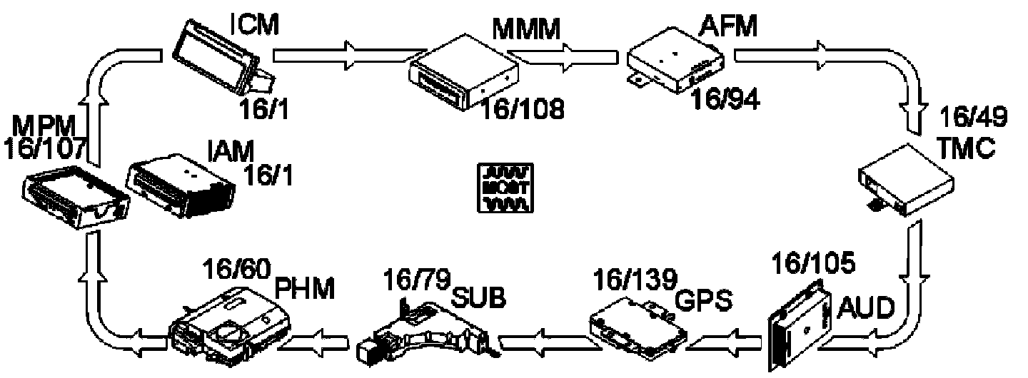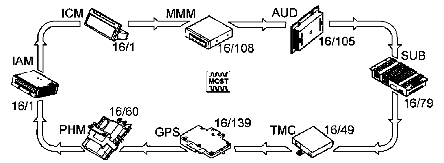 If a control module is not in the stored list, it is disconnected from the MOST network and the functionality of this control module is blocked. This means that control modules in the MOST network cannot be moved from one vehicle to another.