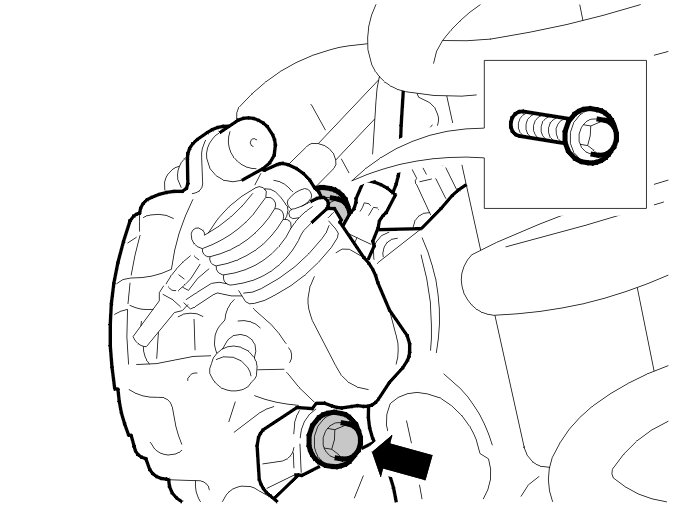 Remove the brake hose from its bracket. Hang the brake caliper in a suitable way.