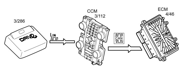 When activating the function automatic start/stop of engine, Climate control module (CCM) sends a signal about chosen status of the function to Engine control module (ECM) (4/46) via the CAN-net.